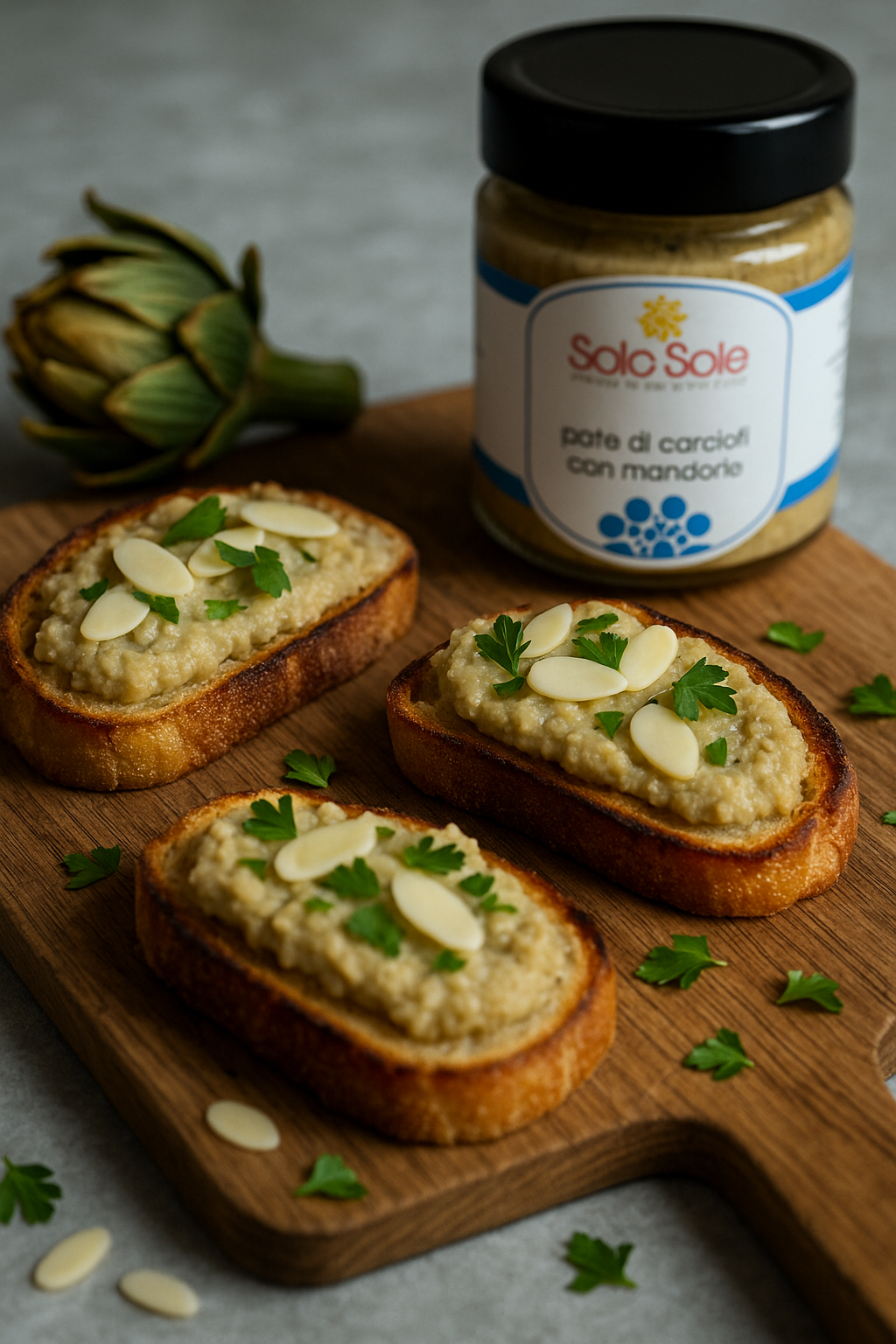 Patè di Carciofi con Mandorle – krémová pomazánka z artyčoků a sicilských mandlí. Jemná, elegantní delikatesa k bruschettě, vínu i sýrům. 🌿✨