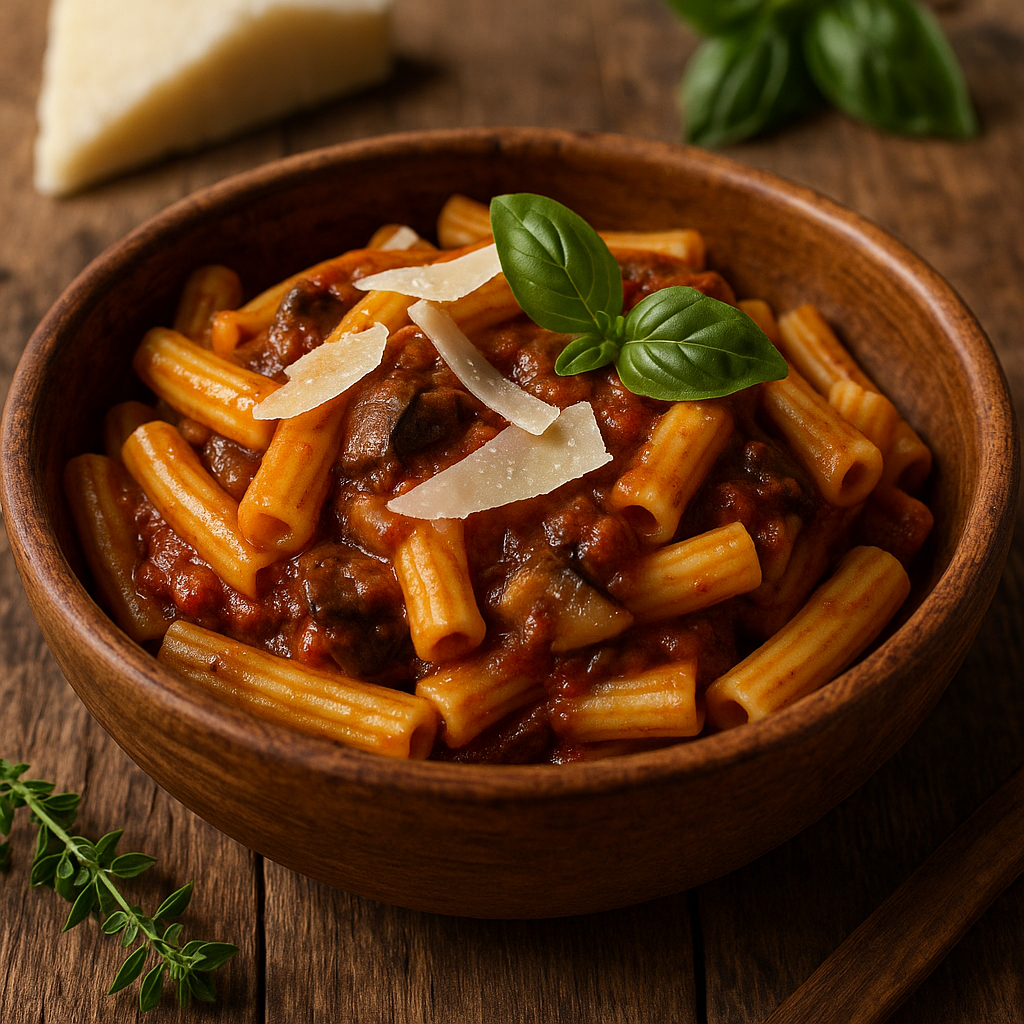 🍅🍷 Tato omáčka je zosobněním sicilské kuchyně, která umí propojit jednoduché ingredience s bohatou chutí. Základem jsou šťavnatá italská rajčata, doplněná o sušené hřiby (Boletus edulis) a červené víno Nero d’Avola, které dodává omáčce hloubku a jemně nasládlý tón. Extra panenský olivový olej a špetka muškátového oříšku pak dotvářejí chuť do posledního detailu.